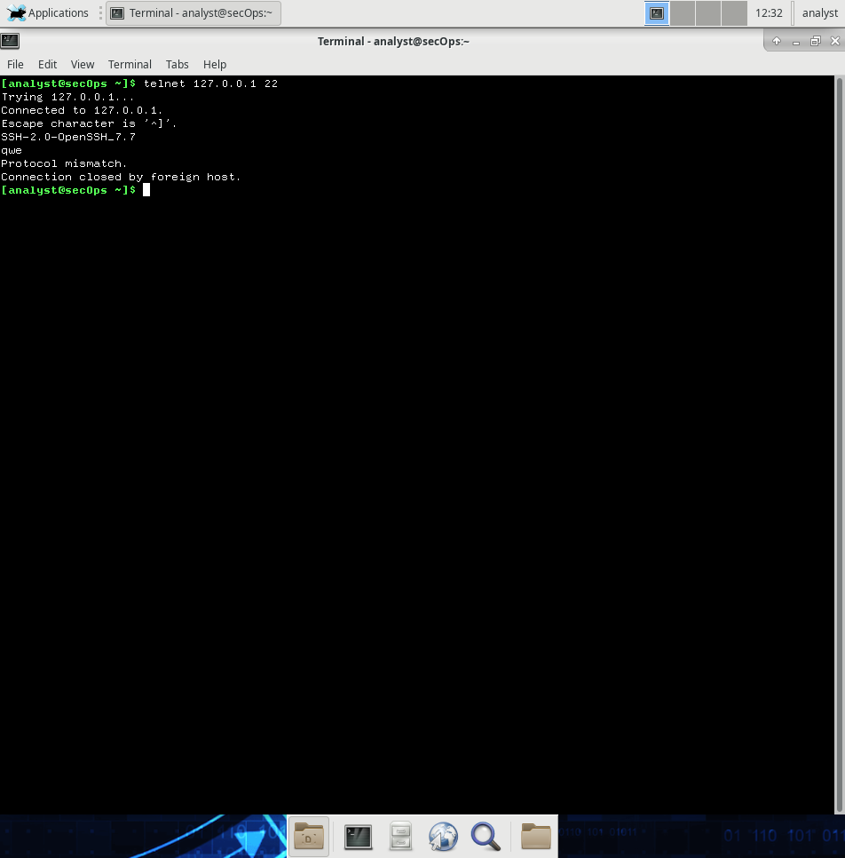 Выберем в приведенном выше выводе команды netstat процесс, подключенный к порту 22. Подключитесь к ней с помощью команды Telnet.