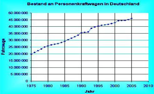 Entwicklung der Anzahl von Personenkraftwagen in Deutschland. Insgesamt waren zum 1. Januar 2004 49.648.043 Automobile in Deutschland zugelassen.