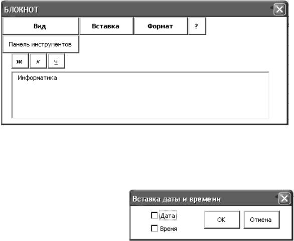 Второй пункт меню «Вставка» включает подпункт «Дата и время», при выборе которого появляется вторая форма. На второй