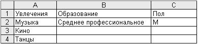 Cells(1, 1) = “Увлечения” |