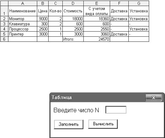 Фрагмент рабочего листа «Заказ» после работы с программой показан на рис. 16.
