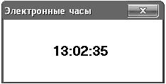 На форме расположена метка, в которой выводится текущее время. При загрузке формы включается таймер и идет посекундный отсчет времени. Внешний вид формы показан на рис. 23.
