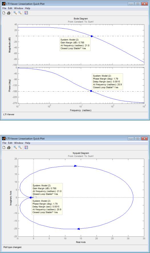 3. Разомкнуть систему, построить ЛАХ, ЛФХ (см. рис. 19) и АФЧХ системы (см. рис. 20).