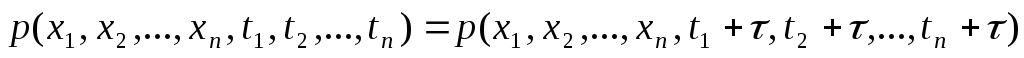 Случайные процессы, статистические характеристики которых одинаковы во всех сечениях называются стационарными случайными процессами.