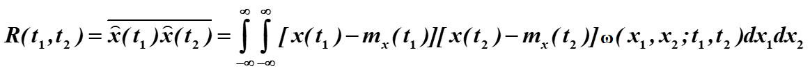 АКФ характеризует статистическую связь сечений случайного процесса (внутри процесса). Если связи между сечениями нет (сечения независимы), то R(t1, t2) = 0