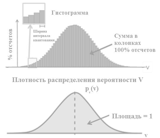 В пределе, когда ширина столбца гистограммы стремиться к 0, получается зависимость, называемая плотностью распределения вероятности pv(v).