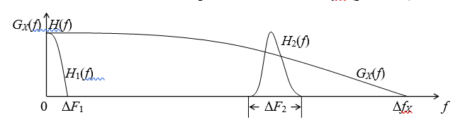 Рис. 5.6. Спектр широкополосного СП и АЧХ узкополосных ФНЧ и ПФ.