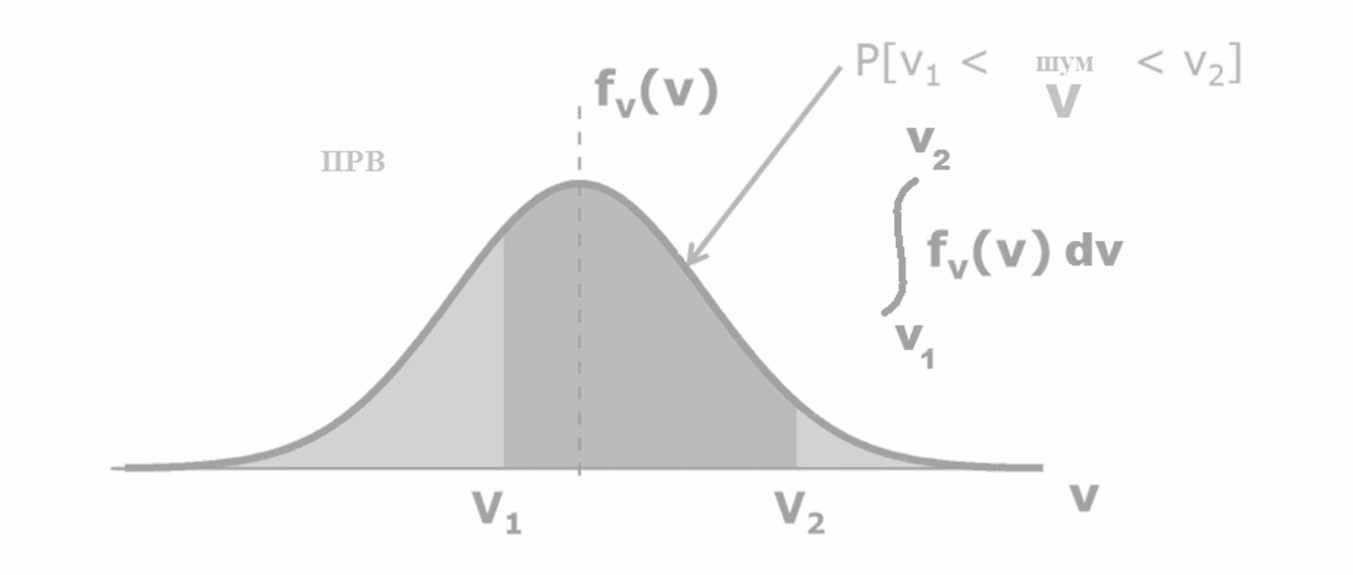 Вероятность, что величина сигнала будет в диапазоне от V1 до V2.
