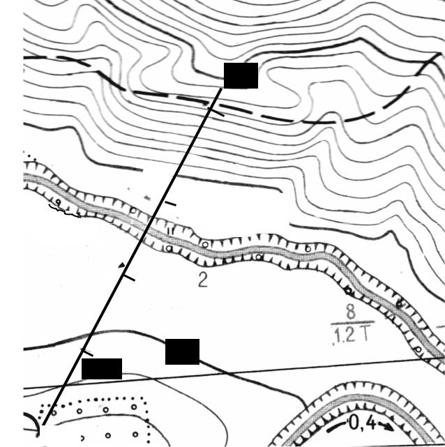 На карте выбирается участок для МП в соответствии с подр.2.1. На выбранном участке наносится трасса перпендикулярно к направлениям руслового и пойменного потоков. На меандрирующих реках морфостворы располагают в наиболее узком месте долины реки с наименьшим числом стариц и проток, на участках, где направления руслового и пойменного потоков практически параллельны. На блуждающих реках морфостворы назначают в местах наименьшей ширины зоны блуждания. Предварительно начало и конец участка трассы назначаются за пределами поймы (на 100…200 м). Окончательно длина участка уточняется после установления РУВВ.