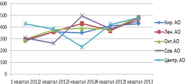 по округам г. Омска в I-м квартале 2013 г. А