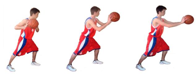 Выучи эту передачу и тренируй ее правой и левой рукой, так как хороший игрок должен уметь передавать мяч с любой стороны. Эта передача выполняется на два счета: на раз – быстрое вынесение мяча назад–наверх; на два – движение вперед в такой последовательности: ноги, тело, плечи и руки.