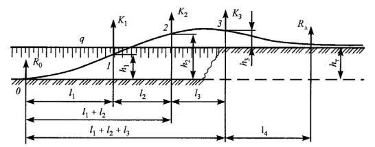 точками подъема трубопровода и определение нагрузок в этих точках |