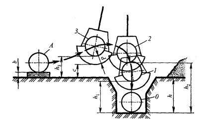 где qк – вместобмость ковша, м3; νц – скорость движения цепи, м/с; kр – коэффиц ент разрыхлен я; kн – коэффициент наполнения ковша; tк – шаг установки ковшей, м; zк – количество ковшей на роторе, шт; nр – частота вращения ротора, /с.