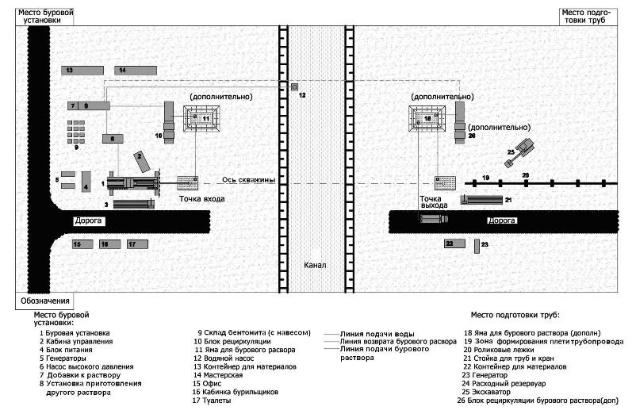 расположения объектов, параметры выбранной установки ГНБ, а также |