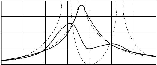 Рис. 4.15. АЧХ динамического гасителя с трением |