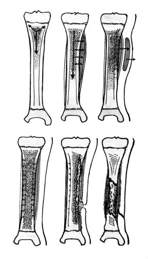 Рис. 55. Динамика развития острого гематогенного остеомиелита: