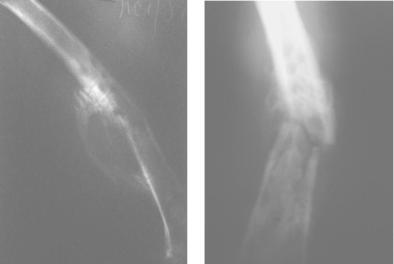Рис. 57. Рентгенограммы при хроническом остеомиелите