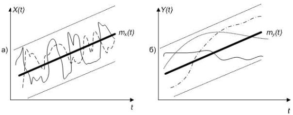недостаточные характеристики для описания основных свойств СП. В этом можно убедиться, обратившись к рис. 1.5, на котором изображены реализации двух случайных функций Х(t), Υ(t).