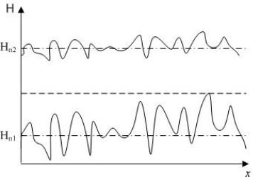 На практике вопрос об эргодичности процесса решается путем анализа физической природы изучаемого явления. Если, например, удается установить, что характеристики каждой реализации СП зависят от влияния какого-либо фактора, можно сразу сделать заключение о неэргодичности изучаемого СП. Примером служит рис.1.7, на котором отражены «колебательности» высоты полета самолета над уровнем моря в зависимости от средней высоты n. При малой n сильно сказывается турбулентные потоки воздуха, поднимающиеся от земли, и колебания ∆Н могут быть значительными. С ростом n это влияние ослабевает и дисперсия процесса уменьшается.