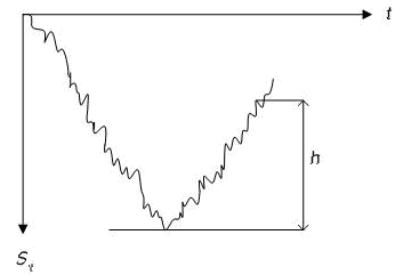 Кумулятивная сумма St(Sk ) в среднем дрейфует вниз (рис. 1.12), а после разладки вверх (изменяется знак суммы математических ожиданий ( 2 1). На каждом шаге (поступлении очередного отсчета) формируется функция gt , и если она превышает порог h, подается сигнал разладки.