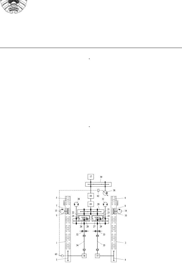 Гидросистема трансмиссии оснащена двухпоточным делителем потока 55, выполнен- ным, например, по известной конструктивной схеме [3].