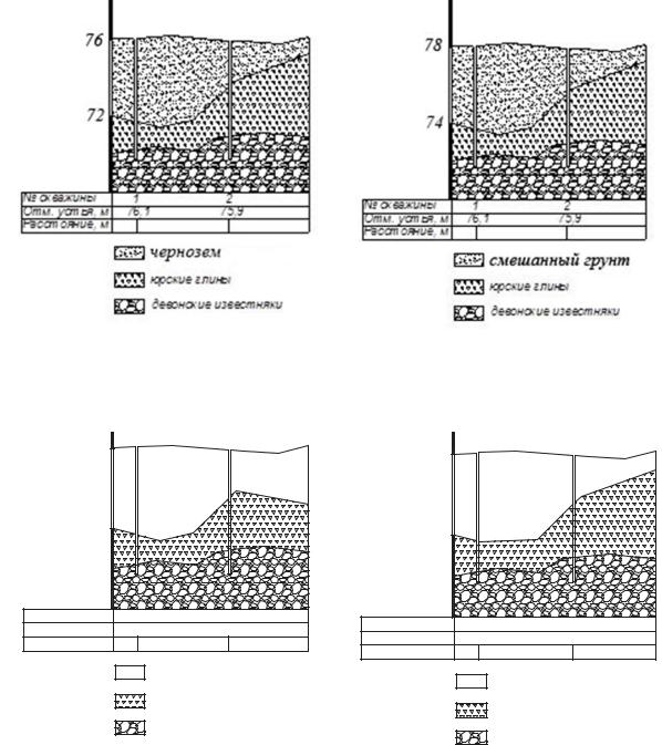 Геологические разрезы (№1-13), на основании которых выполняют расчет заземляющего устройства (в частности, выбирают удельное сопротивление грунта) приведены на рис. 4-16.