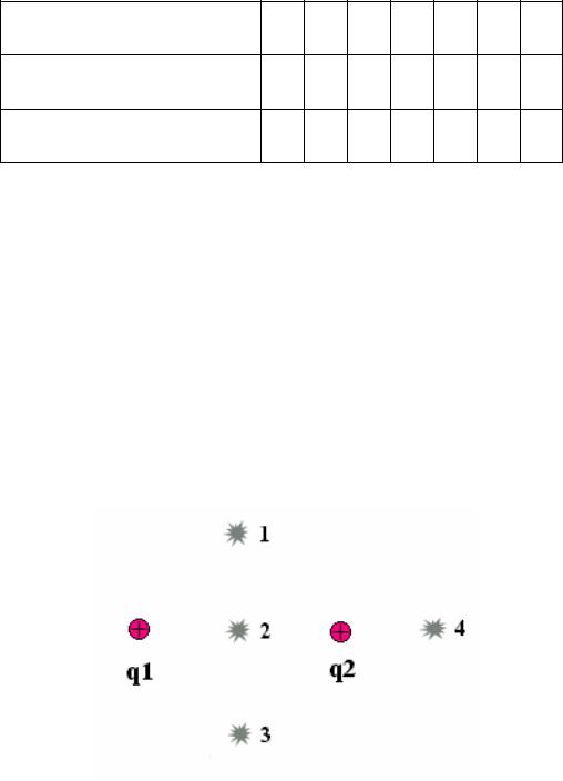 2. Выбрав далее масштаб 1 см = 2 м, с помощью программы определить величину и направление вектора напряженности и потенциал в точках, указанных на рис.3 звездочкой. Зарисуйте данное распределение зарядов, укажите направление напряженности электростатического поля в каждой точке.