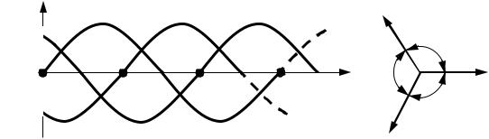 Рис. 5.1. Временная и векторная диаграммы трёхфазной системы ЭДС