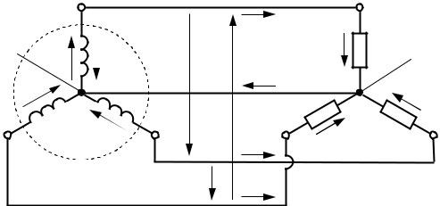 Рис. 5.2. Схема замещения трёхфазной электрической цепи при соединении фаз генератора и приёмника по схеме «звезда»