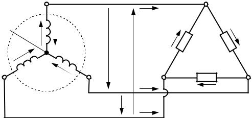 Рис. 7.1. Схема замещения трёхфазной электрической цепи при соединении фаз приёмника по схеме «треугольник»