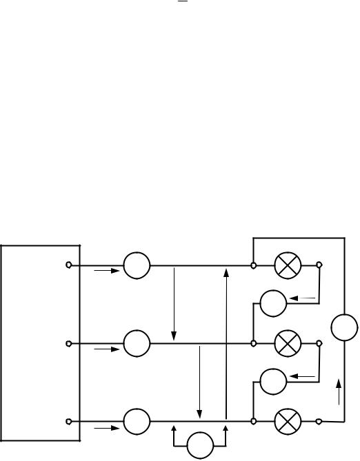 Исследуемая трёхфазная цепь (рис. 7.2) состоит из трёх групп ламп накаливания, соединяемых «треугольником» и подключаемых к трёхфазной системе ЭДС распределительного блока БР.