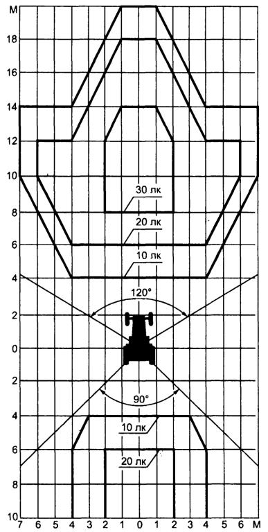 Рис. 5. Изолюксы искусственной световой среды строительнодорожной машины