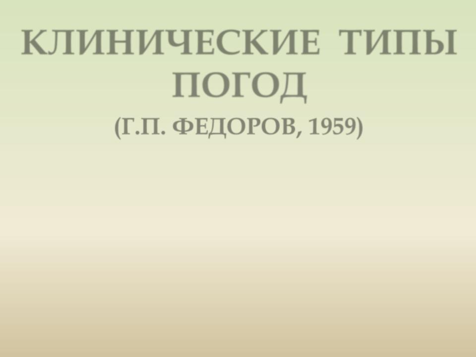 КЛИНИЧЕСКИЕ ТИПЫ ПОГОД