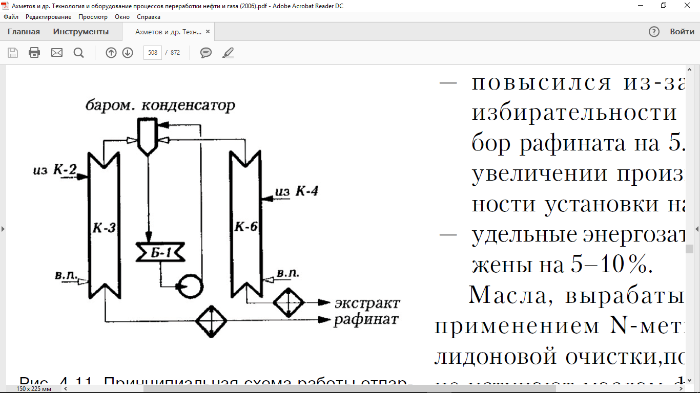 — облегчились эксплуатация установки и ремонтные работы, поскольку из-за низкой температуры застывания NMП (—24 °С вместо +41 °С у фенола) отпала необходимость в пароспутниках на трубопроводах;