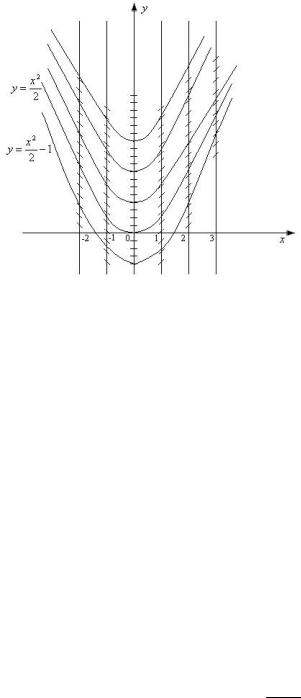Решение. Построив изоклины x k (прямые линии) и поле направлений, приближенно получаем поле интегральных кривых. Общим решением является семейство парабол y x2 /2 C (рис.1).