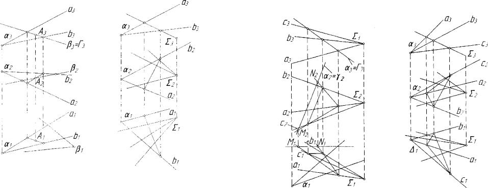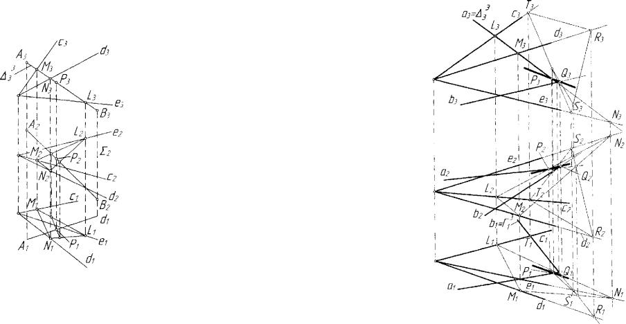 В этом случае одна из проекций прямой пересечения уже есть. На рисунке 4.29 эта проекция совпадает с проекцией 273 гиперплоскости 27. Остальные проекции строятся по точкам пересечения с прямыми а и b плоскости а(а, Ъ).