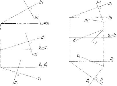 1. Две прямые перпендикулярны, если одна пара их одноимен ных проекций перпендикулярна, а в двух других парах одна из проек