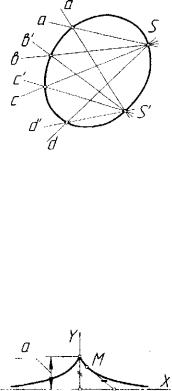 5.Кривая рассматривается как множество точек пересечения линий двух проективных пучков. Например, в проективной геометрии известна теорема Штейнера [10, 37], согласно которой кривая второго порядка представляет собой множество точек пересечения соответст вующих прямых двух проективных пучков прямых первого порядка (рис. 5.15), включая центры пучков. В частности, если угол в паре лу чей первого пучка равен углу в паре соответствующих им лучей вто рого пучка, то получаем проективное образование окружности, если