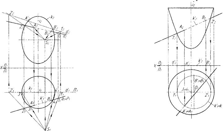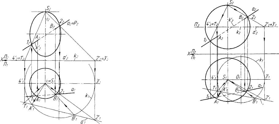 направляющие линии этих поверхностей (рис. 7.25). Поверхность О представляем следующим образом: 0 - Ф ш ) = [)q>1, где tp] - образующая прямая этой поверхности. Принимая вершину S в