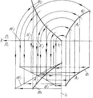 линии к' и а на плоскость отображения 77", которой принадлежит линия к , получаем образы этих линий: к'—> к(кх,к2), а-*а'(и\,а\).