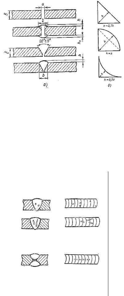 СРис. 1.4. Схемы подрезов зон сплавления таврового (а), многослойного стыкового ( ) и корневого стыкового (в) швов