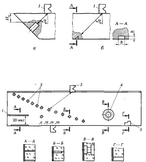 РисбА. 6.5. Схемы тест-о разцов с искусственными отражателями в виде отверстия с плоским дном (а) и зарубки (б):