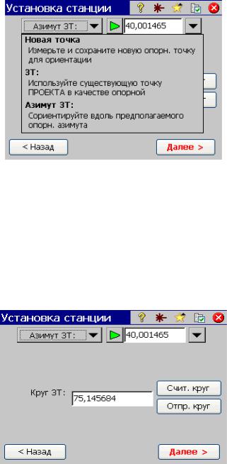 точки ориентирования или дирекционному углу на неё. Выбор осуществляется по нажатию кнопки «Азимут ЗТ» (рис. 55).