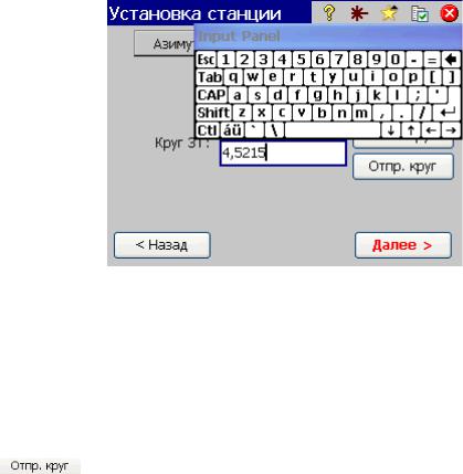 В окне, изображенном на рис. 41, в строке «Круг ЗТ» может быть занесено любое значение горизонтального круга тахеометра в угловой мере. Значение угла в градусах отделяется от значений минут