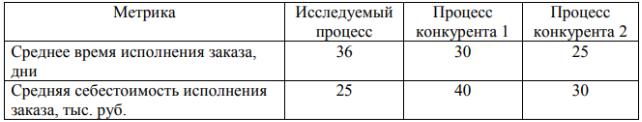 процессами конкурентов. По каждой метрике для каждого из сравниваемых процессов выставляется оценка (количественная, качественная или балльная).