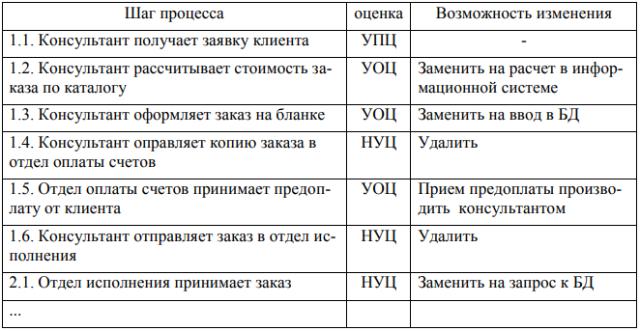 По результатам оценки шагов делаются выводы, какие шаги процесса