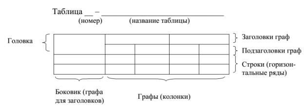 Таблица может иметь заголовок, который следует выполнять строчными буквами (кроме первой прописной) и помещать над таблицей после слова «Таблица» и ее номера. Заголовок должен быть крат-