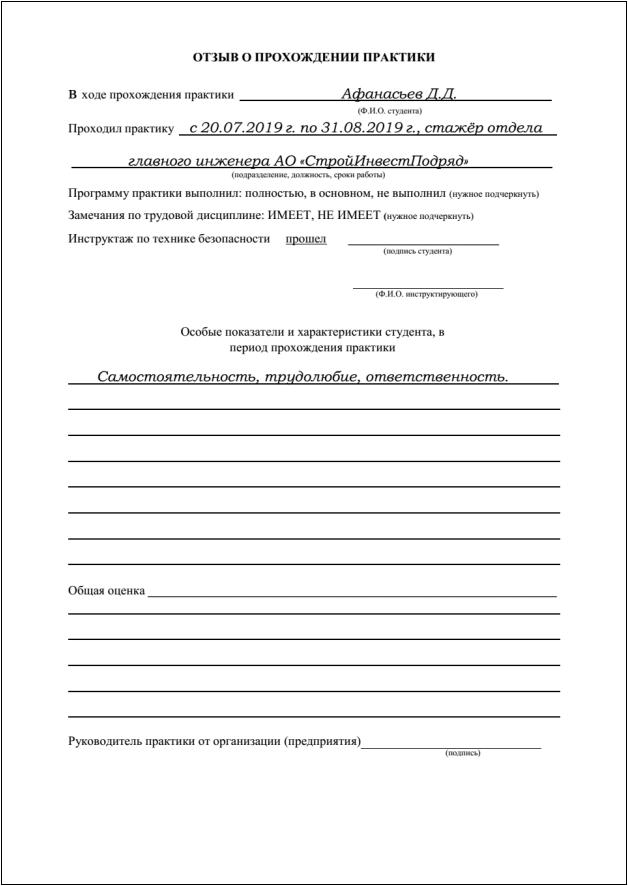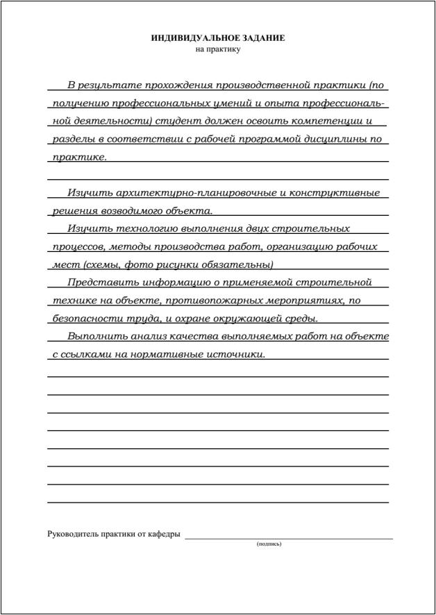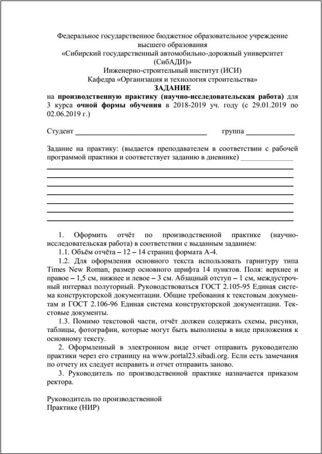 Пример бланка задания на производственную практику (научно-исследовательская работа)