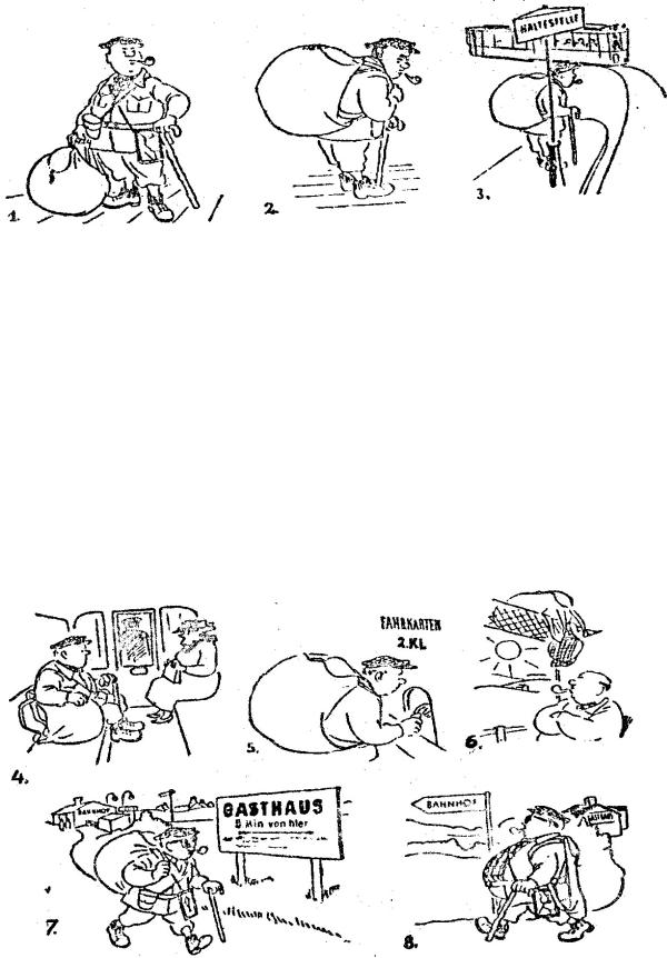 1. Warum will der dicke Mann wandern? Will er vielleicht abnehmen(худеть)? 2. Wie sieht er aus?