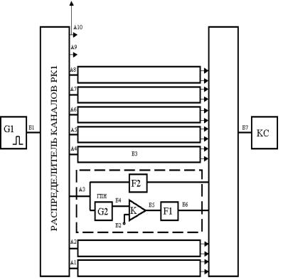 На выходах триггеров в процессе их последовательного срабатывания образуются импульсы, которые и используются как управляющие (коммутирующие) – см. контрольные гнезда А1-А8 (рис. 3.4). За счет отсутствия сигналов на выходах А9А10 образуется сигнал кадровой синхронизации (пауза), длительность которой равна двум канальным интервалам.